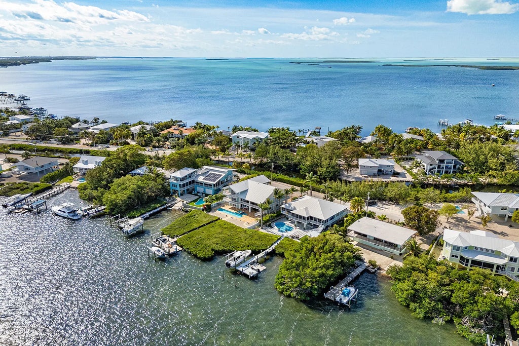 Enjoy this OPEN WATER luxury lifestyle in the coveted area of Buccaneer Point Estates in south Key Largo. Prepare to be captivated by this 5 bedroom, 4 bath extraordinary waterfront masterpiece that combines modern elegance and over 3,900 sq. ft of living space with a tropical paradise ambiance. Nestled on the shores of the bay, this custom-designed home has been thoughtfully crafted with discerning clients in mind. This rare offering promises a lifestyle beyond compare, where every moment is infused with the allure of the Florida Keys. As you step inside, ascend the interior stairs from the grand foyer to the main living level, where cathedral ceilings and an abundance of natural light create an inviting atmosphere. Revel in the breathtaking water views framed by expansive windows and doors, seamlessly blending the beauty of the outdoors with the comfort of your luxurious sanctuary. The heart of this residence lies within the great room, where a well-appointed double island creates the perfect setting for entertaining while the expansive porch areas beckon you to soak in the tranquil vistas. Designed to accommodate a large family or gathering of friends, this home boasts two master ensuites on each level, ensuring privacy and comfort for all. In addition, three guest bedrooms with adjoining bathrooms provide ample space for everyone to unwind and recharge. For water enthusiasts, this home is a dream come true with an inviting in-ground heated pool, surrounded by a custom paved deck area and lush privacy landscaping. The deep water pier dock features a boat lift and jet ski lift. The spacious four-car garage with dual doors, a second refrigerator, an ice maker, and the potential for a bar or summer kitchen makes it a versatile space for hosting unforgettable backyard gatherings.