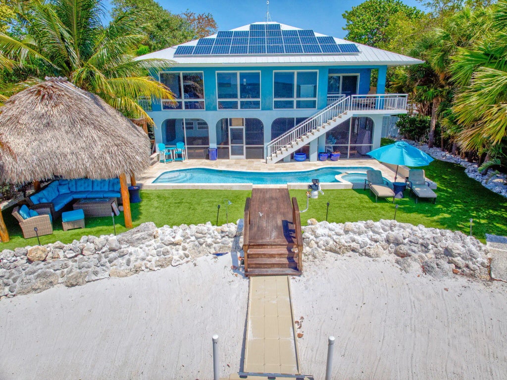 Spectacular Oceanfront Retreat in Cudjoe Gardens! Experience the ultimate in Keys living at this beautifully renovated 3 bedroom, 2 bath oceanfront oasis. This smart, solar-powered home with 6 Tesla Powerwalls, 2 EV chargers, plus an annual check for excess energy production offers eco-conscious luxury with remarkably low electric bills. Enjoy breathtaking ocean views from your private pool and raised spa, entertain effortlessly in the multiple outdoor living spaces, launch kayaks and paddleboards from your own sandy beach, or relax in the tropical breeze surrounded by lush landscaping. Inside, no detail has been overlooked. The home boasts hurricane impact doors and windows, new plank floor, and a fully updated designer kitchen with center island and exquisite lighted quartzite countertops. Wake up to stunning ocean views from the Primary Suite complete with custom built-out walk-in closet and beautifully updated bath. Offered turn key, this smart home seamlessly blends modern convenience with coastal charm. Kayaks, Paddle Boards and 2 almost new (less than 10 hours) 2022 Sea Doo GTX 300 Jet Ski's are also included in the sale to make this a fantastic vacation rental from day 1! Don't miss this rare opportunity to own a move-in-ready oceanfront property plus lots of toys--a true Florida Keys gem!