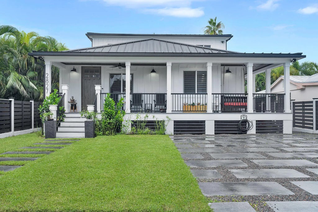 This absolutely stunning 5-bedroom, 5-bathroom home, re-imagined and built brand new in 2023, offers 3,062 sq. ft. of luxurious living space on a 5,040 sq. ft. lot. Featuring 9' ceilings, custom wood cabinetry, porcelain wood-style and LVT flooring, a 17-foot island seating 8, the head chef's kitchen is equipped with professional-grade appliances, including a 36'' gas stove & vented hood, and wine fridge. The master suite boasts a walk-in closet and spa-like wet-room bathroom with dual shower-heads, claw-foot tub, and dual vanities. Additionally there are laundry spaces on each floor, ample storage, attic space and underneath the home. impact-resistant windows, spray foam insulation, aluminum standing seam double strapped roof, and a future-proof design that exceeds building codes, this home is built to last. The backyard includes a heated pool, thatched chickee hut, and privacy landscaping. From the moment you step inside, you'll be captivated by the flawless linear symmetry, exquisite craftsmanship, and an unwavering attention to detail that together make this space a true gem.