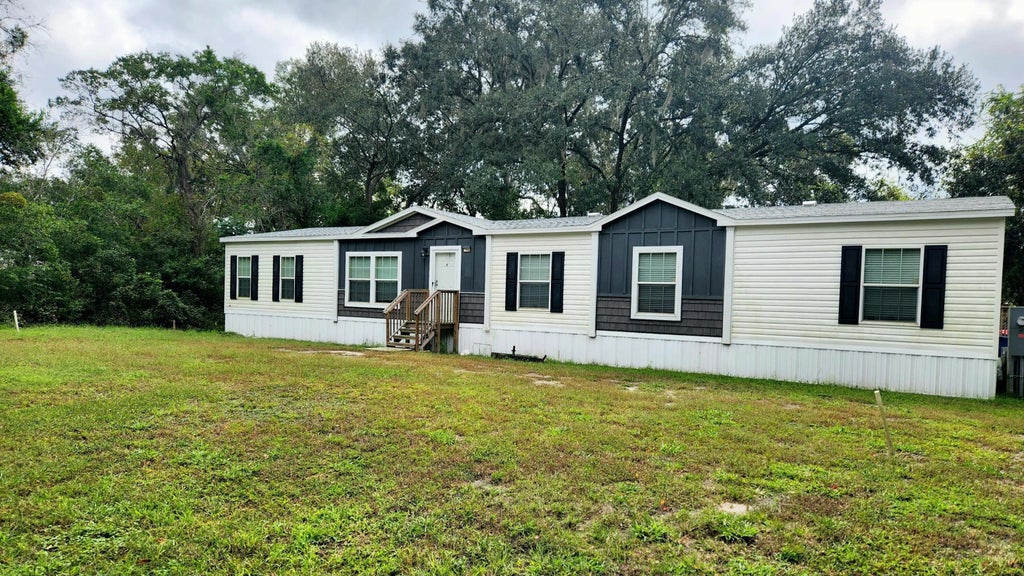 Situated on a generous lot within the Pine Lake community, this residence combines contemporary features with timeless appeal. Open-concept living area filled with natural light ideal for entertaining or simply relaxing. This beautifully appointed 4BR/2BA mobile home spans over 2000 sf of living space. The upgraded model showcases exceptional attention to detail throughout, making it perfect for those seeking comfort and style. Once inside this open concept living and dining area flows seamlessly together. The kitchen truly is the heart of this home an Architectural ceiling with luxe pendant lighting creating an upscale ambiance. The cabinetry evokes fine furniture and features a stunning Frigidaire suite of stainless steel appliances paired with a modern farmhouse sink that adds both functionality and elegance to your daily routine. The thoughtfully designed butler's pantry provides excellent storage space, open area for a coffee bar and large countertop appliances. The spacious primary bedroom offers a peaceful retreat, complemented by three additional well-sized bedrooms that provide flexibility and two full bathrooms ensure convenience. The transition space leading to the den/home theater/office area is well defined by the sliding French doors that lead into the backyard The combination Mud room and Laundry nook is a well thought out amenity boasting functionality and organization. The surrounding area boasts natural beauty with rolling landscapes and mature oak trees creating a serene backdrop for daily life. This location offers small-town charm while maintaining convenient access to dining, shopping and healthcare